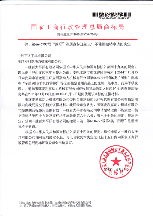 “圖形”注冊商標連續三年不使用撤銷申請的決定