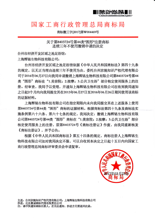 第44類“圖形”注冊商標連續三年不使用撤銷申請的決定